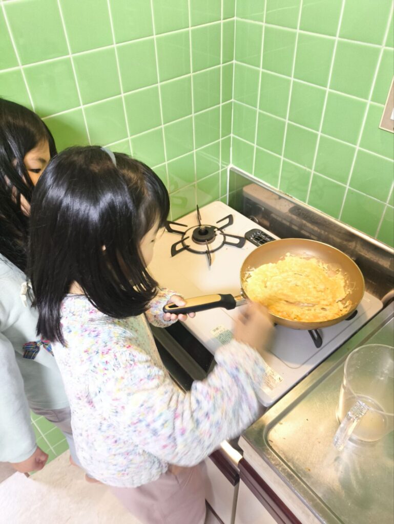 火のそばでは順番に声を掛け合いながら、混ぜる・ほぐす・炒めるの工程を担当してくれました☺️
