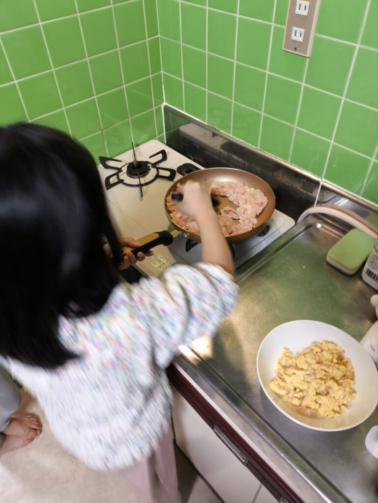 本日の延長給食|子どもたちが作る鶏そぼろ三色丼🍱✨