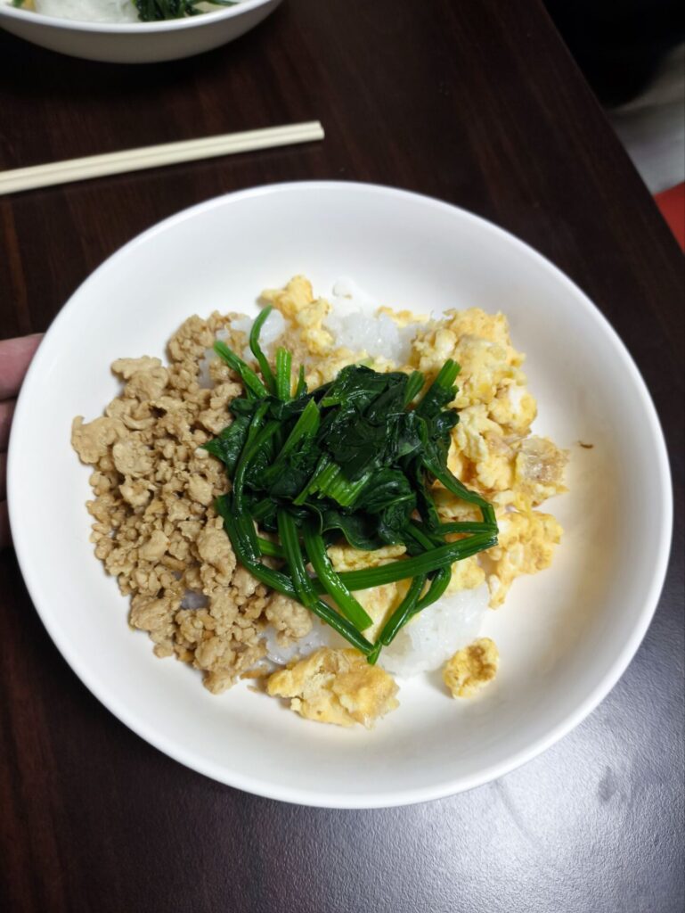 本日の延長給食は「鶏そぼろ三色丼」でした🍱✨