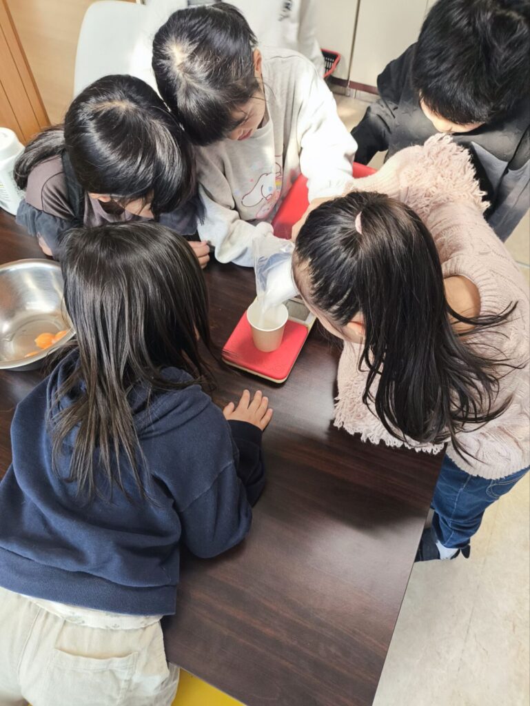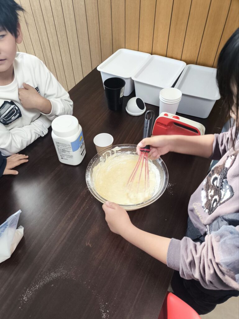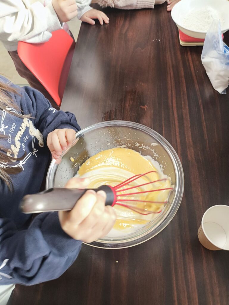 「みんなで順番に混ぜたい!」という声に、メレンゲは幻となりましたが...子どもたちが楽しそうなら良し!😊
