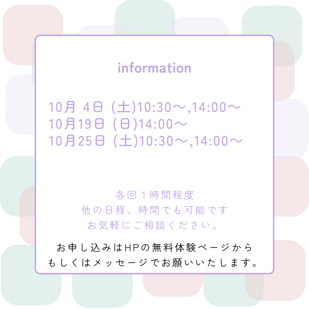 お申し込みはHPの無料体験ページ、またはメッセージよりお願いいたします。