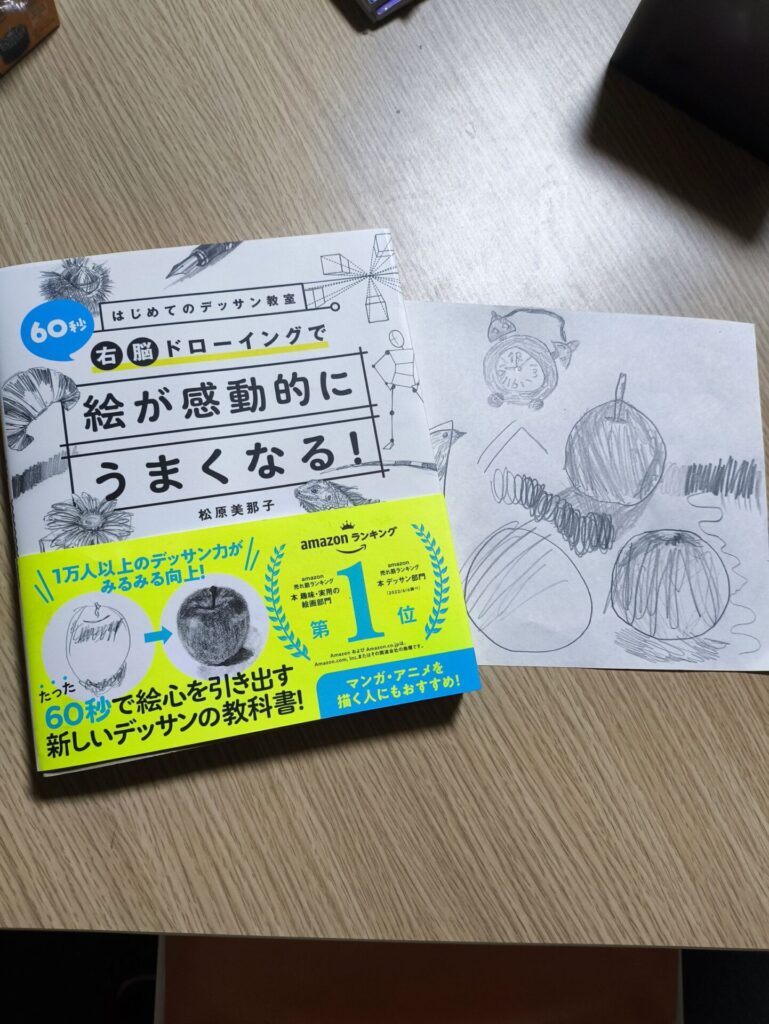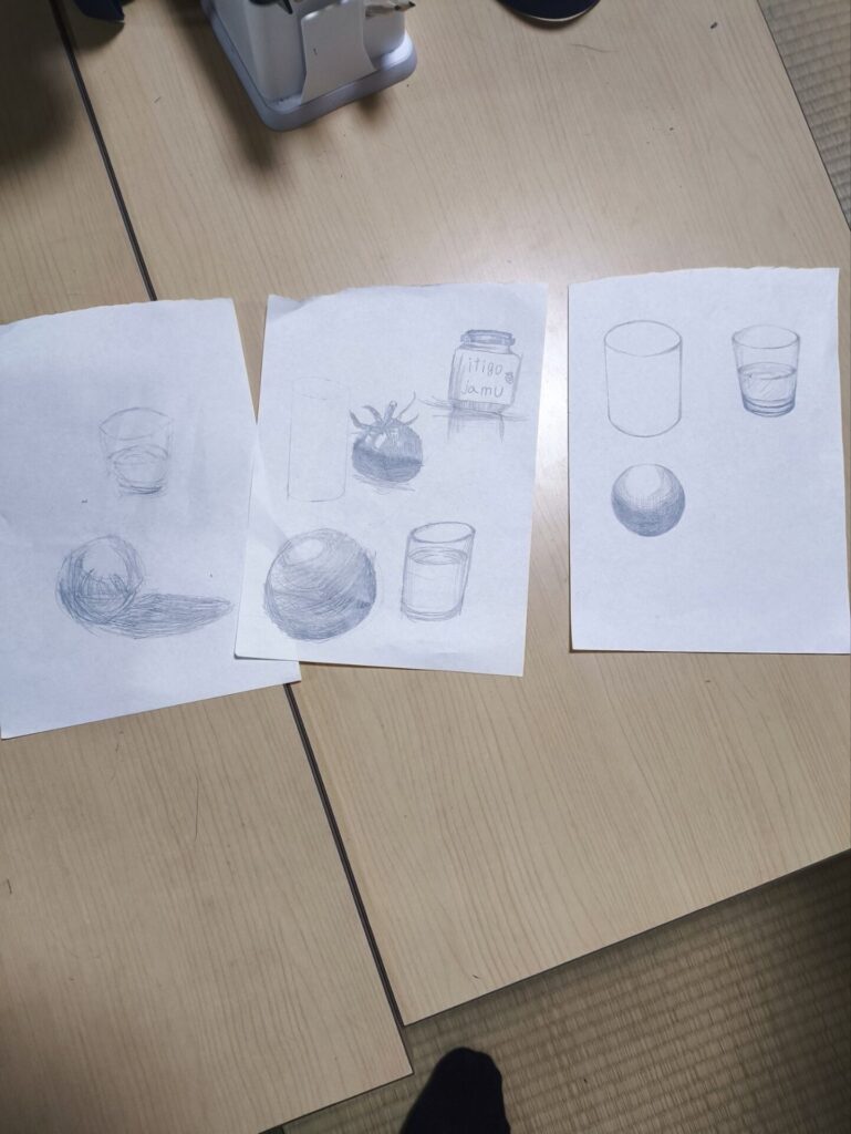 「右脳ドローイング」の本を開きながら、みんなで静物デッサンをしてみました。